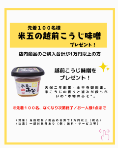 ① 1万円以上ご購入で「米五の越前こうじ味噌」をプレゼント